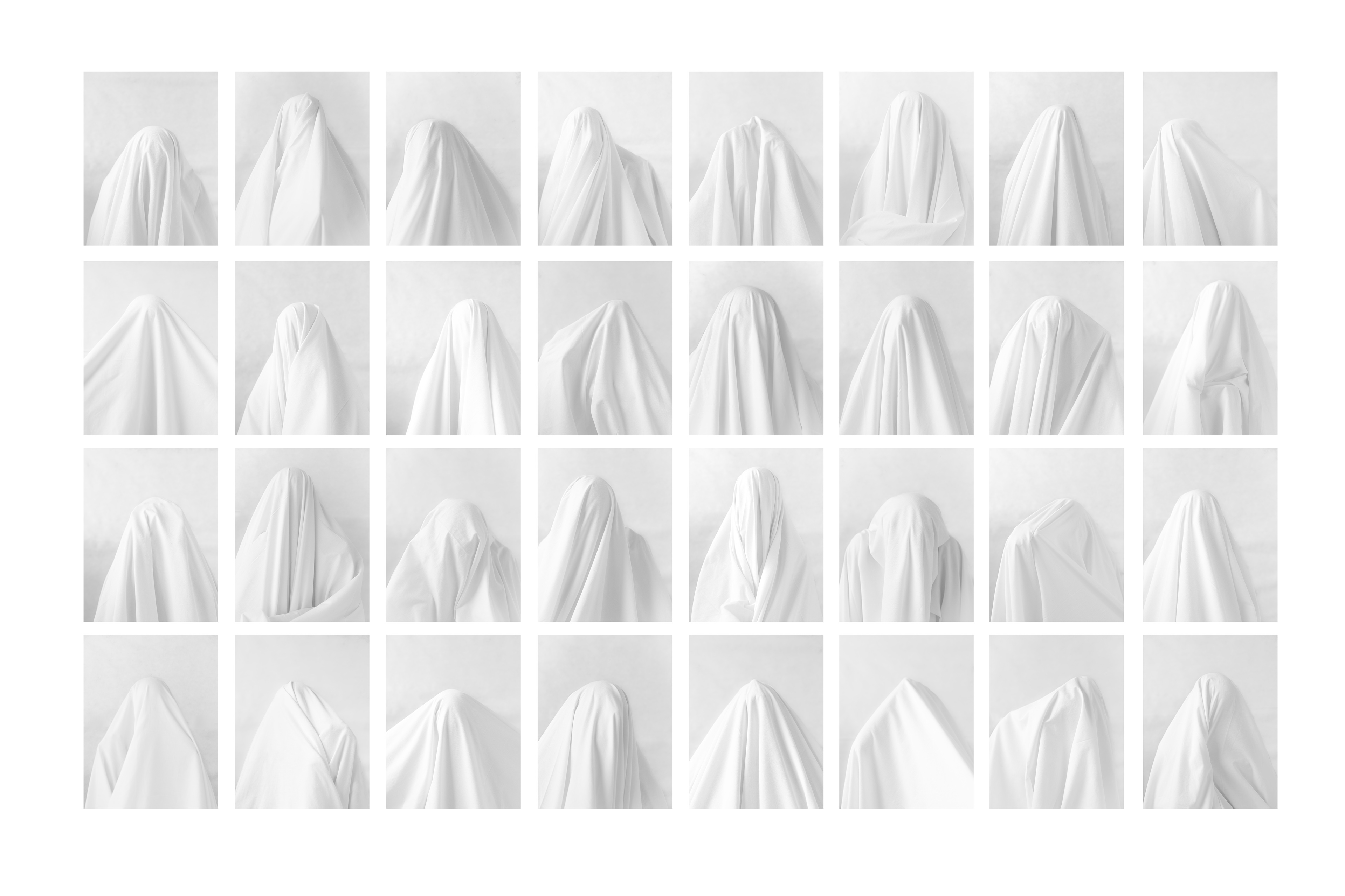 32 persone ritratte durante il Festival Balla coi Cinghiali. Obiettivo del progetto è stato quello di offrire un'esperienza di de-personalizzazione, fotografando i partecipanti durante la meditazione guidata. Se il ritratto solitamente è uno strumento di riconoscimento, in questo progetto accade il contrario. Il soggetto non è più riconoscibile né dagli altri né da se stesso, e l’immagine diventa espressione di un luogo di sospensione dell’Io.Il lenzuolo nasconde il volto e unifica i corpi, creando una continuità visiva tra persone diverse. Ne emerge un’opera in cui il soggetto non è tanto la persona ritratta, quanto il momento di passaggio che attraversa: un’esperienza condivisa di sottrazione, in cui l’identità si fa più leggera e lascia emergere qualcosa di più essenziale.